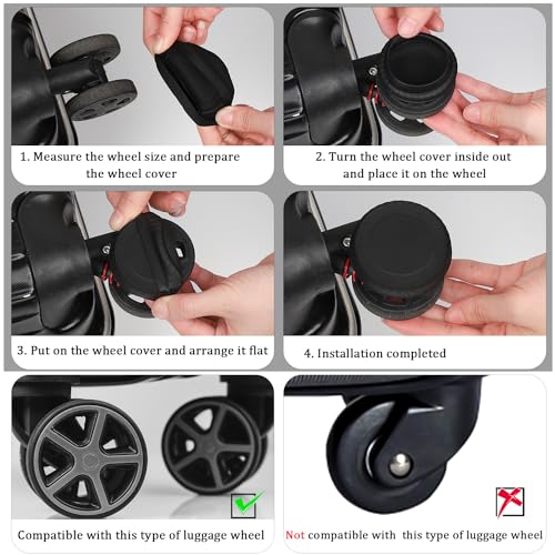 • Package Content: You will receive 8 luggage wheel covers specially designed for the 8 swivel wheels of suitcase for adults and children to protect the wheels from scratches and damage from sharp objects.