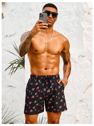 Floerns Men's Swim Trunk Drawstring Waist Cherry Print Quick Dry Beach Shorts 1