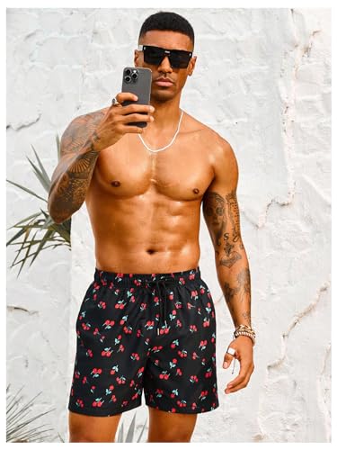 Floerns Men's Swim Trunk Drawstring Waist Cherry Print Quick Dry Beach Shorts 5