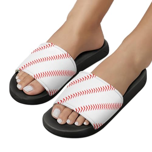 Baseball Womens Slide Sandals Non Slip Summer House Slippers for Girls Slip-on Flip Flops 7