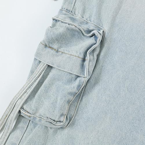 XYXIONGMAO Men's Blue Denim Heavy Washed Multi-Pocket Cargo Pants Functional Hip Hop Techwear Streetwear Slacks Jeans 6