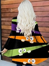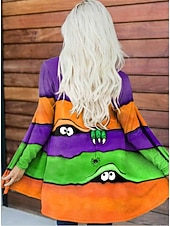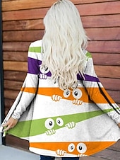 More information about Halloween Women's Coat Lightweight Comfortable Monster Print Vintage Artistic Casual Monster Animal Casual Short Collarless Loose Fit Long Sleeve Outerwear Black White Orange Spring Fall