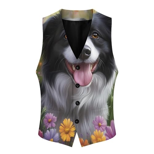 Collie Dog Flowers Men's Suit Vest Slim Fit Business Dress Party Pattern Waistcoat Vest Top 1