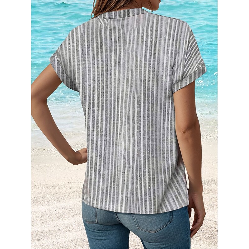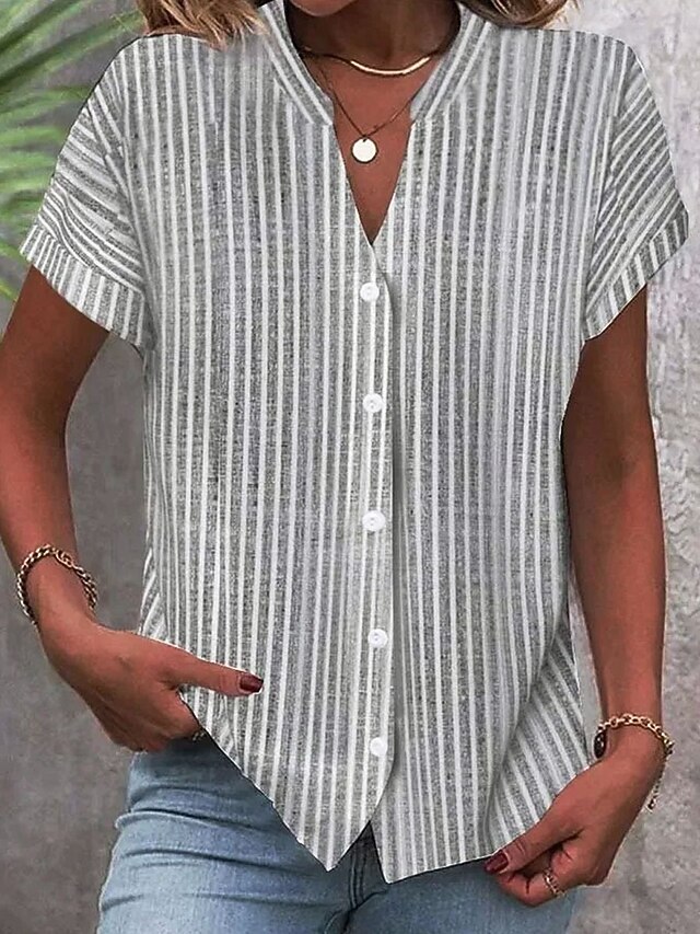 HOT ! Women's Shirt V Neck Button Down Blouse Graphic Striped Stylish Beach Short Sleeve Shirt Collar Regular Tops Daily Buttons Print Pink Blue Green Gray Spring Fall