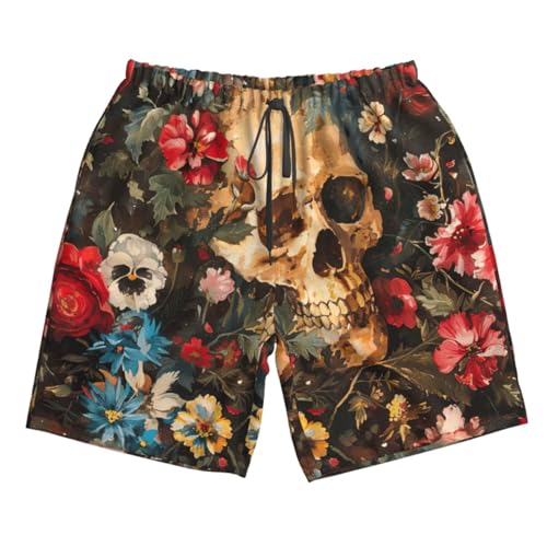 Floral Skull Print Stylish Beach Shorts Swim Trunks Lightweight Breathable Summer Outdoor Activities 1