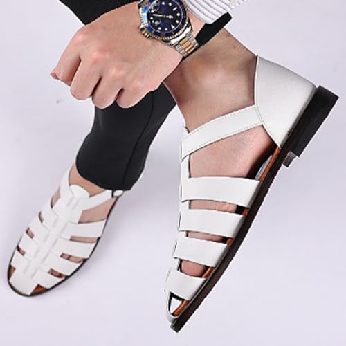 Men's Summer Hollow Breathable Sandals,Outdoor Travel Casual Ankle Strap Closed Toe Anti-Slip Flat Beach Fisherman Shoes 6