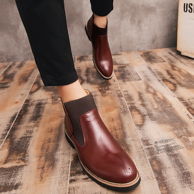 Men's Brown Faux Leather Chelsea Boots – Stylish Slip-On Ankle Boots with Rugged Tread and Perforated Detailing 1