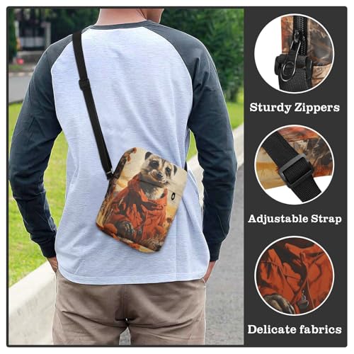HOT ! Crossbody Sling Bag for Women Men, Zipper Closure Messenger Bags Meerkat Wild Field Print with Card Phone Passport Compartment 6.6×9.4×2.5 IN