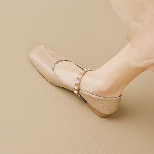 Women's Classic Fashion Square Toe Low Heel Mary Jane Shoes Classic and Comfortable One Line with Pearl Thick Heels Mary Jane Shoes 5