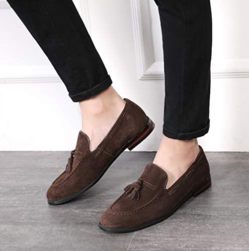 Santimon Mens Fashion Shoes Casual Dress Tassel Slip on Driving Flats Suede Loafers Black Brown Tan 5
