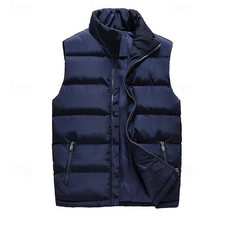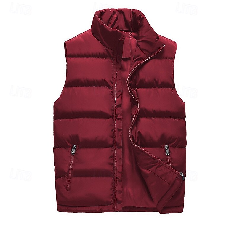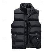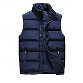 More information about Men's Puffer Vest Vest Gilet Vacation Daily Date Fashion Casual Fall Winter Pocket Polyester Warm Comfortable Solid Color Zipper Stand Collar Regular Fit Black Red Dark Blue Vest
