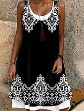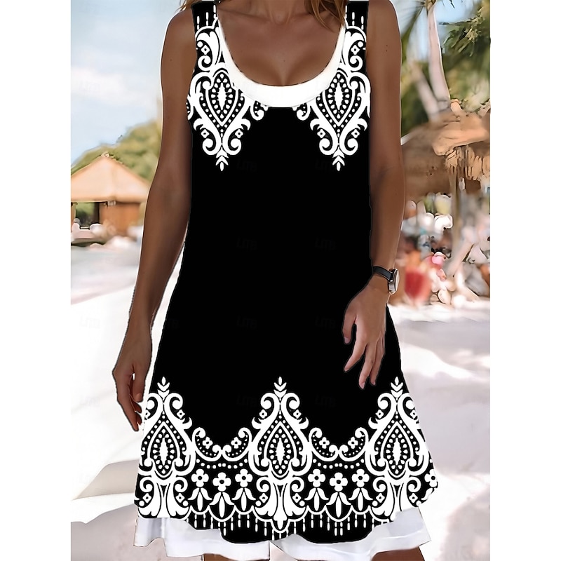 More information about Women's Midi Dress Tank Dress Fashion Classic Outdoor Daily Weekend Regular Fit Graphic Geometric Sleeveless Crew Neck Black And White Spring Fall