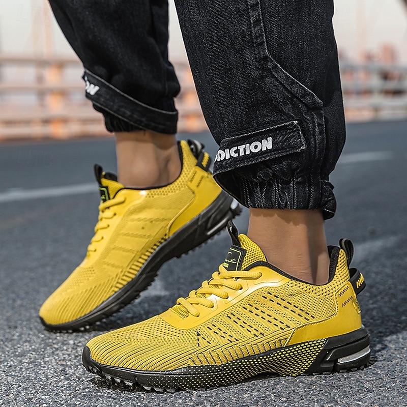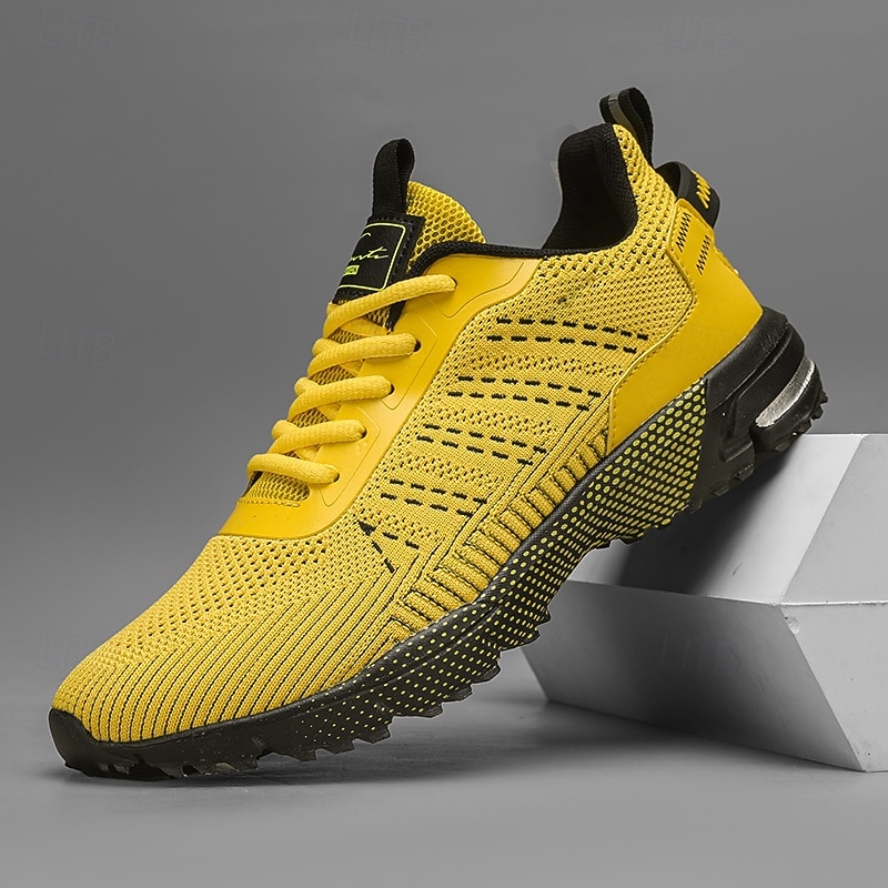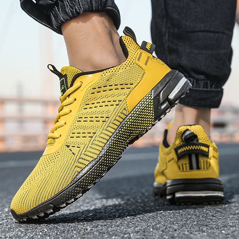 More information about Men's Neon Green Knit Running Shoes – Lightweight Breathable Athletic Sneakers for Gym, Training and Outdoor Sports