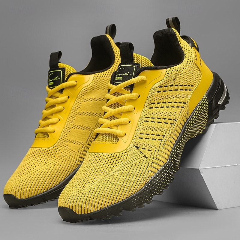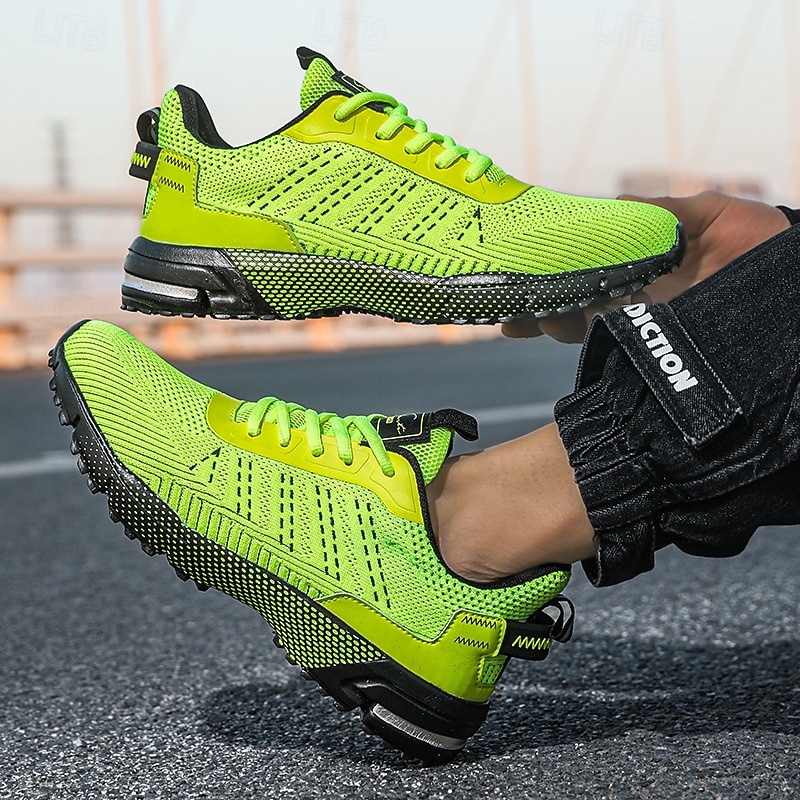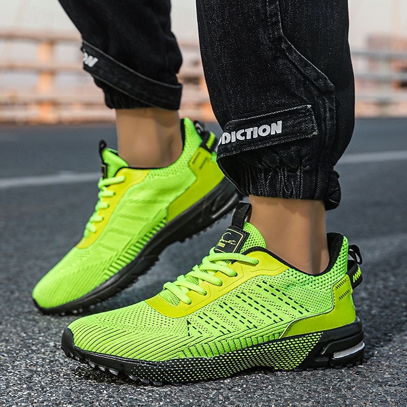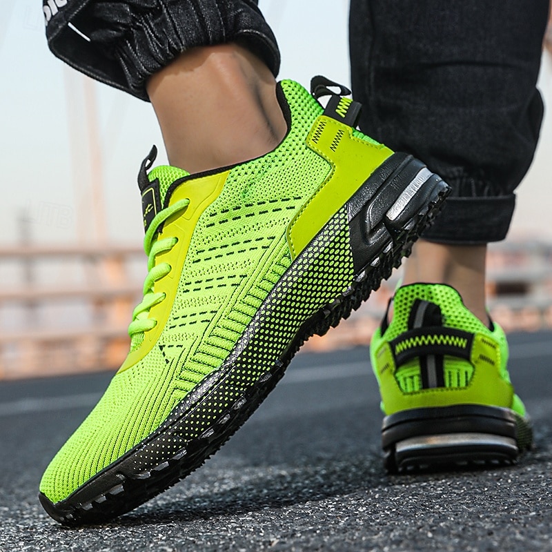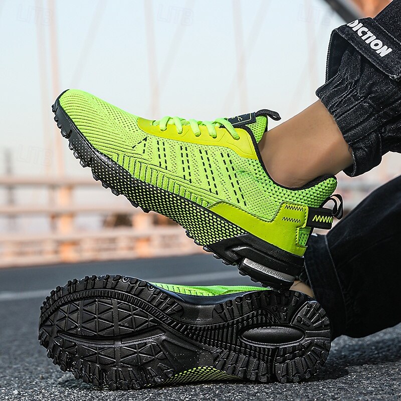 HOT ! Men's Neon Green Knit Running Shoes – Lightweight Breathable Athletic Sneakers for Gym, Training and Outdoor Sports