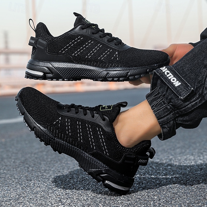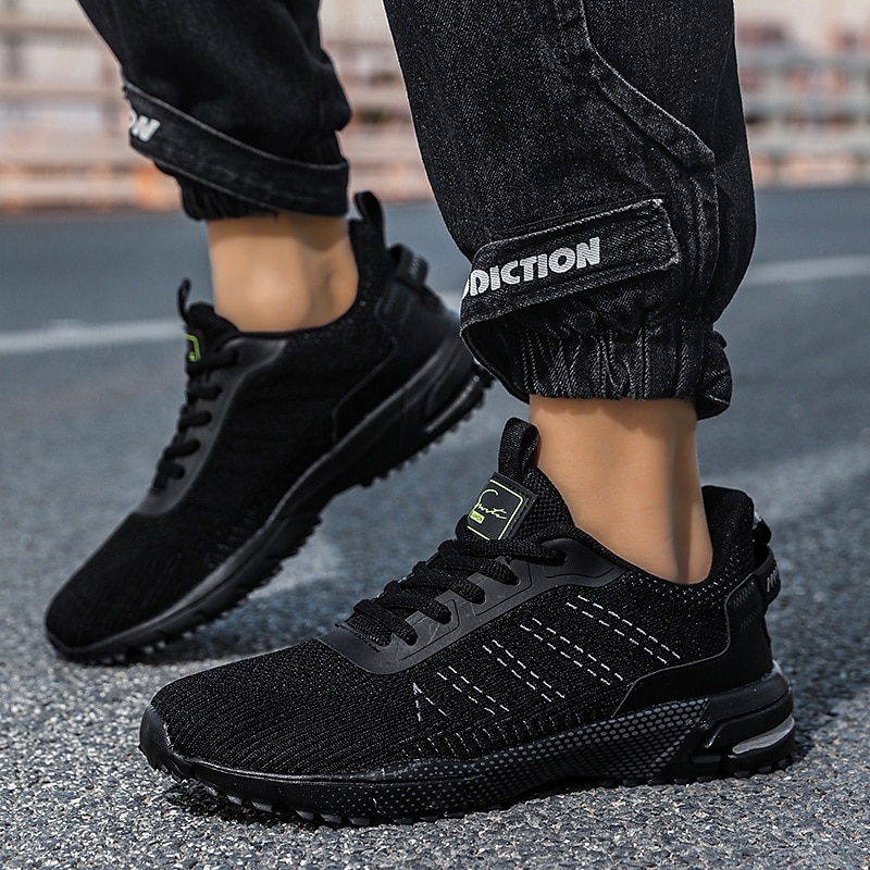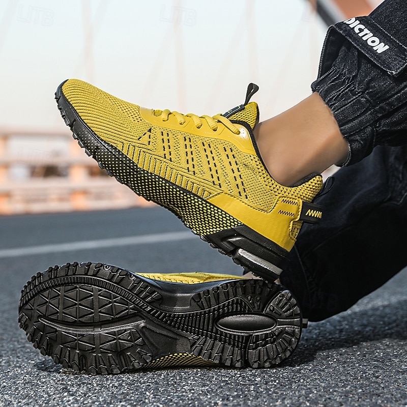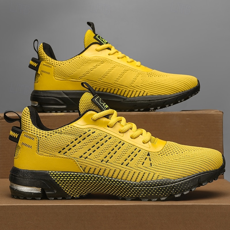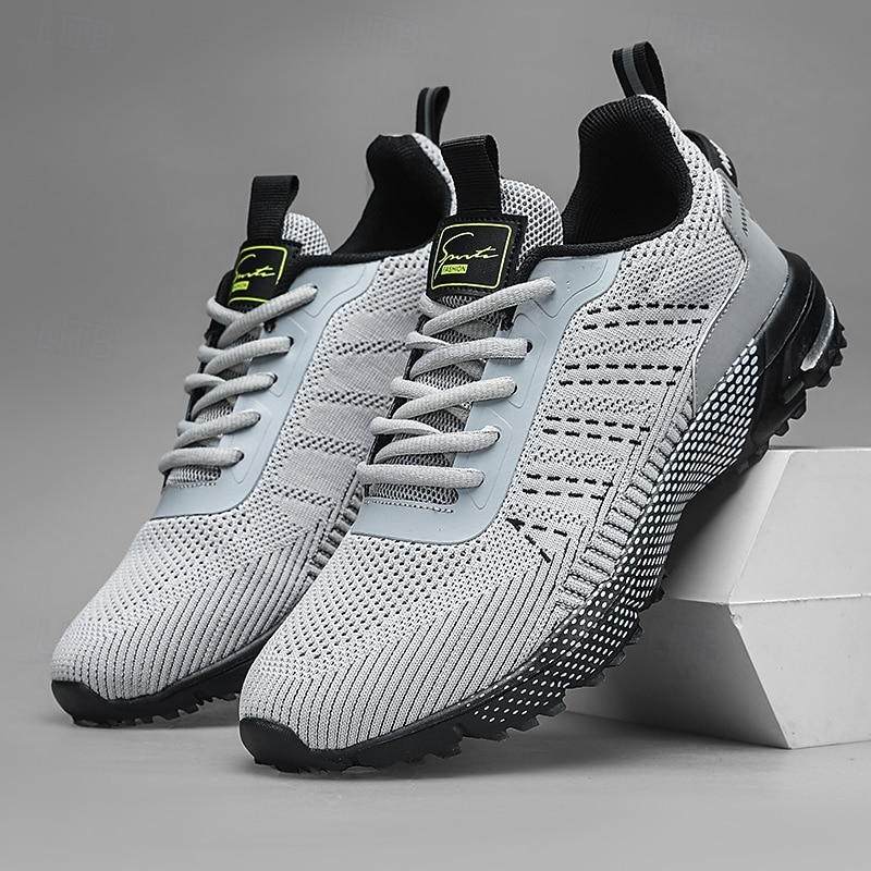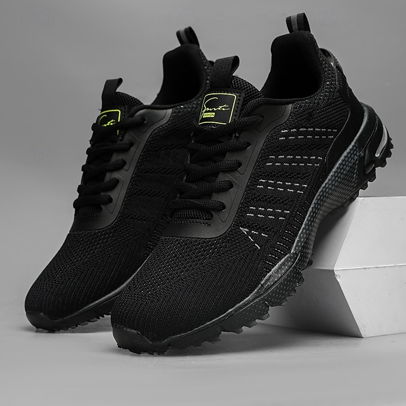 HOT ! Men's Neon Green Knit Running Shoes – Lightweight Breathable Athletic Sneakers for Gym, Training and Outdoor Sports