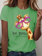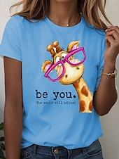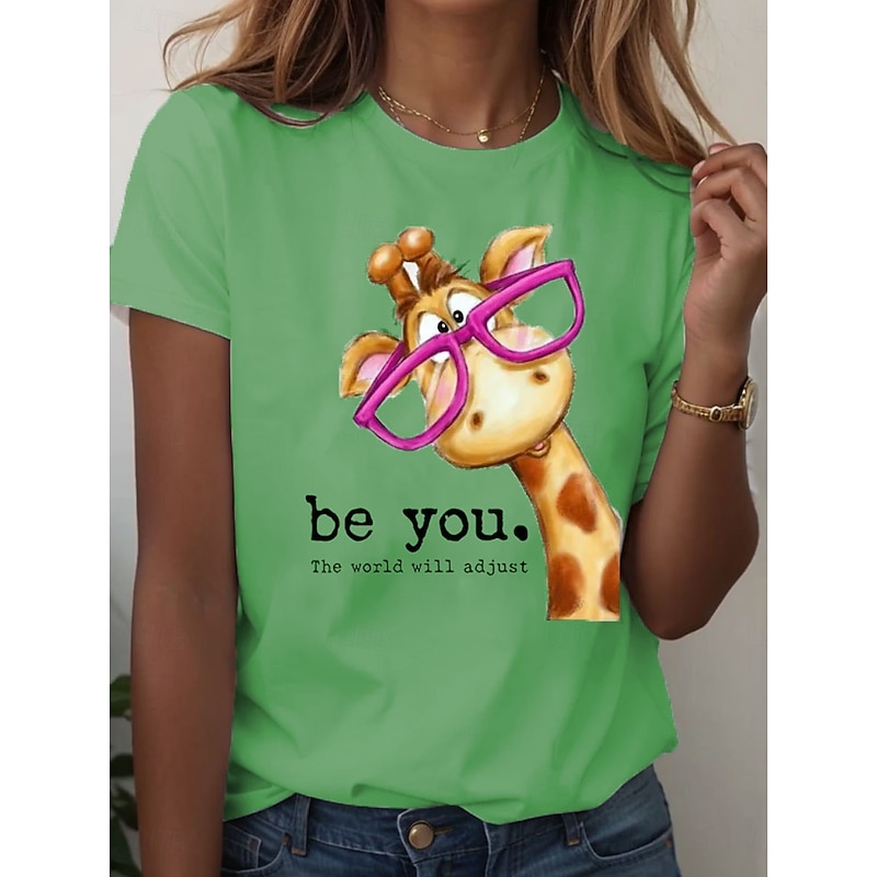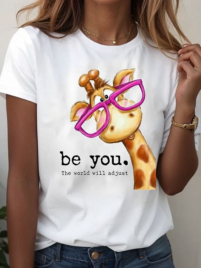 HOT ! Women's T Shirt Graphic Giraffe Letter Vintage Stylish Casual Short Sleeve Crew Neck Regular Tops Daily Weekend Print White Pink Blue Green Summer Spring