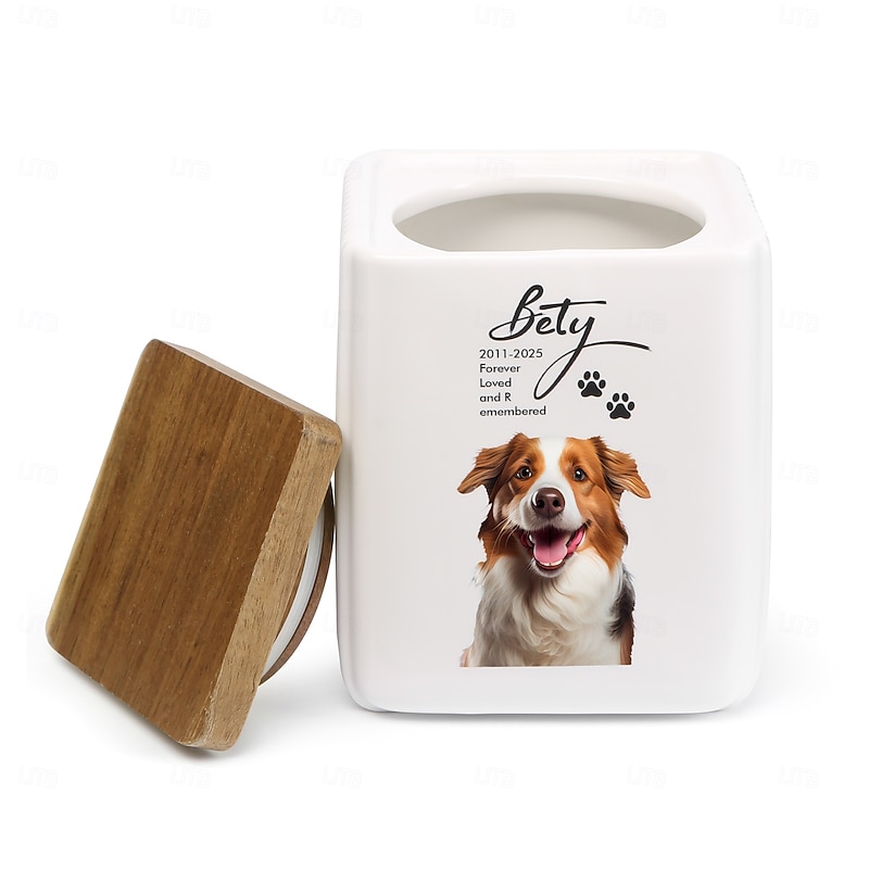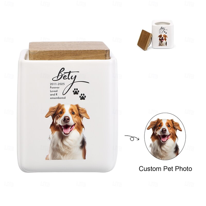 HOT ! Personalized Pet Cremation Urn, Custom Memorial Gift Name Year Text Photo Ceramic Ashes Box for Dog Cat Memorial Keepsake