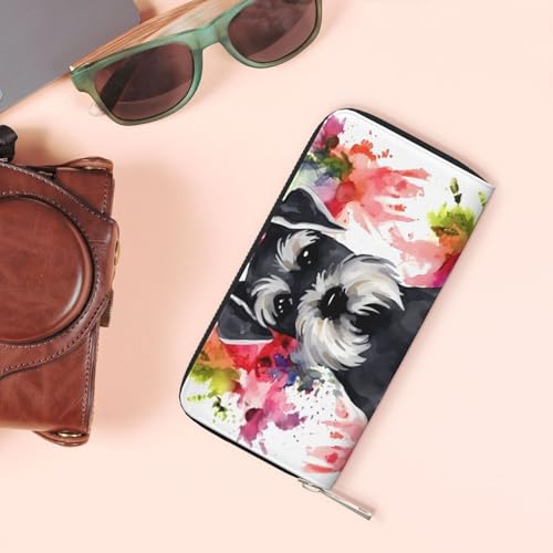 Pu Leather Wallet For Women Girl, Zip Around Credit Card Holder Schnauzer Long Wallet Clutch Purse Waterproof Travel Handbag 1