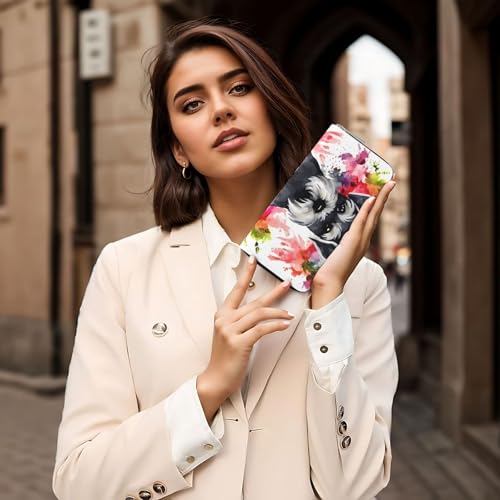HOT ! Pu Leather Wallet For Women Girl, Zip Around Credit Card Holder Schnauzer Long Wallet Clutch Purse Waterproof Travel Handbag