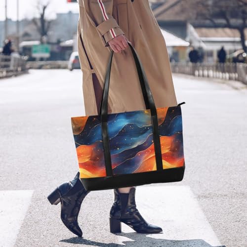 More information about KLL Orange Navy Blue Red Wave Abstract Art Style Portable women's briefcase with zipper book tote Large Handbag for gym with bolsos secret para mujeres