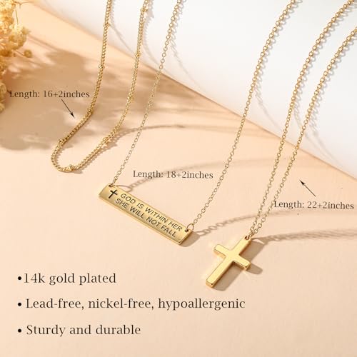 Layered Cross Bible Verse Necklaces,14K Gold Plated Christian Religious Confirmation Inspirational Jewelry Gifts