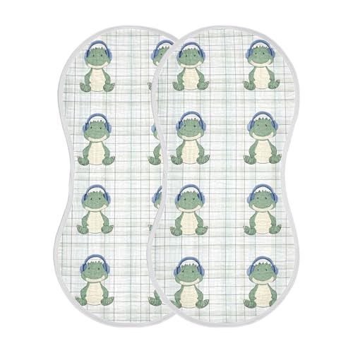 vvfelixl Cute Crocodile with Earphone Burp Cloths for Baby Boy Girls Baby Washcloths Burp Rags 1 Pack 2