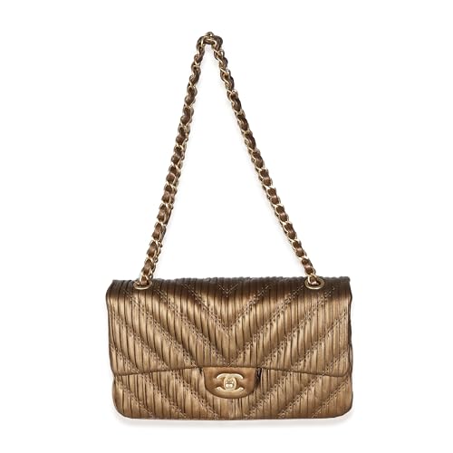 More information about Pre-Loved 18C Bronze Chevron Pleated Calfskin Medium Classic Double Flap Bag, Brown