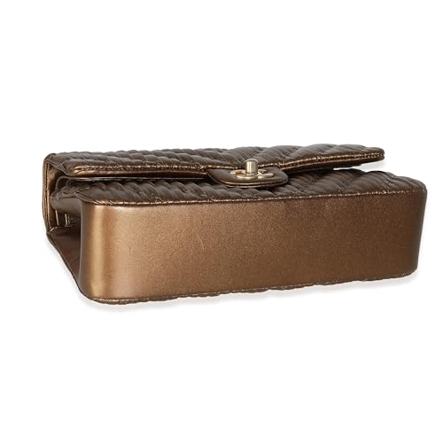 Pre-Loved 18C Bronze Chevron Pleated Calfskin Medium Classic Double Flap Bag, Brown 1