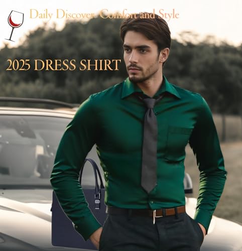 • Premium Fabric & Effortless Mobility-Crafted with shiny stretch fabric, this men’s long sleeve dress shirt moves with you—ideal for busy urban days or all-day meetings. The lightweight, breathable texture ensures comfort without sacrificing polish, perfect as a slim fit dress shirt or stretch business shirt for modern men who value flexibility.