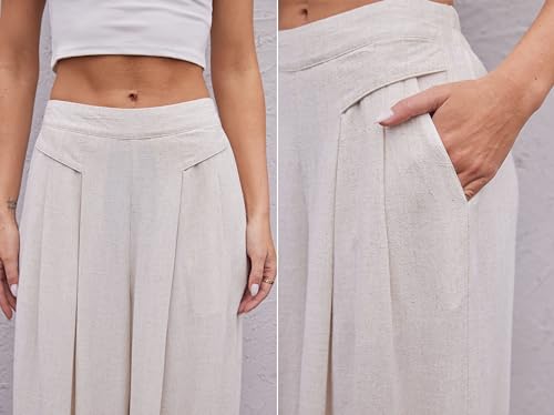 heipeiwa Women' s Culottes Linen Pants Summer Casual Flowy Beach Cotton Linen Wide Leg Palazzo Pants