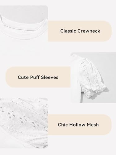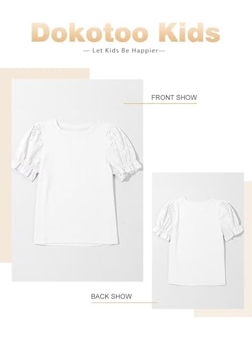 More information about Girls Summer Shirts Cute Hollow Out Puff Short Sleeve Tops Casual Crewneck Tee Blouse 6-15 Years