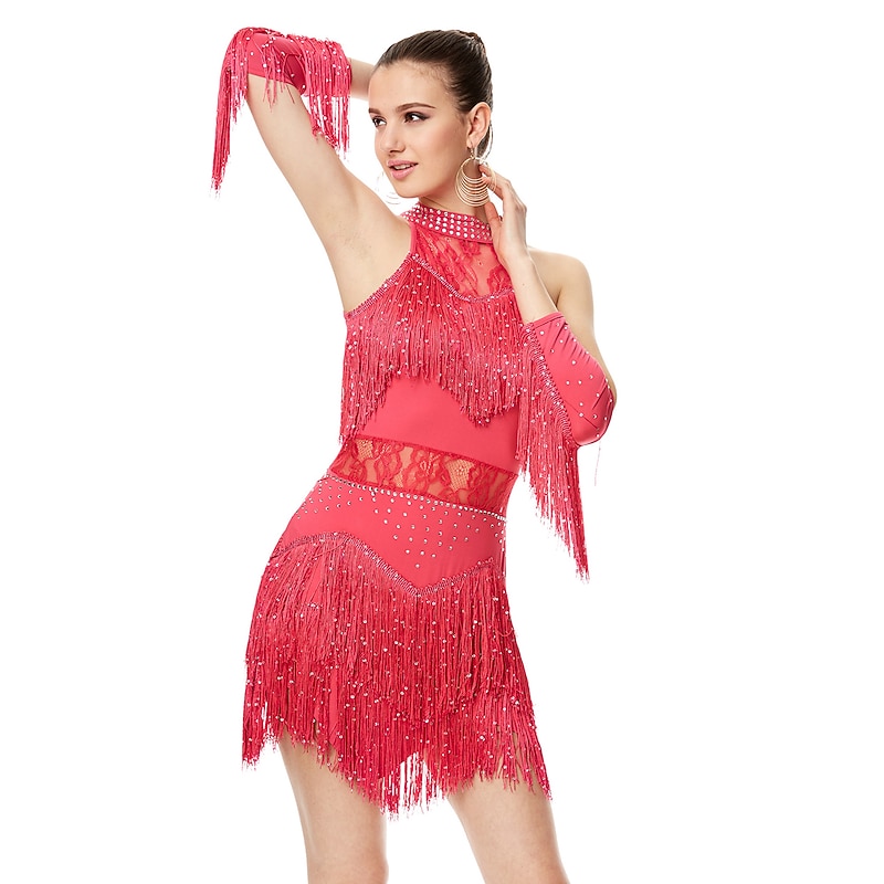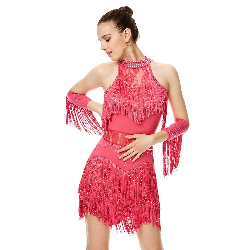 Latin Dance Dress Fringed Tassel Crystals / Rhinestones Women's Performance Sleeveless High Spandex 16