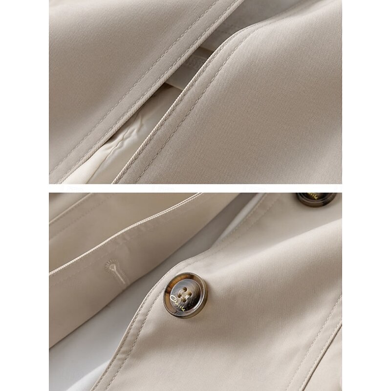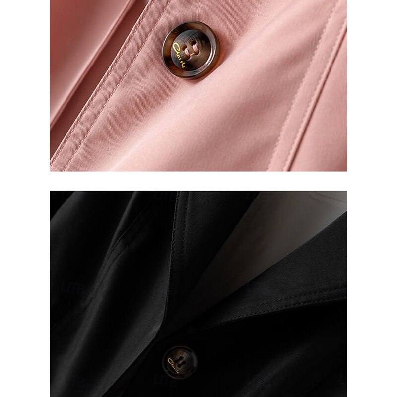 Women's Trench Coat Comfortable Breathable Zipper Pocket Casual Plain Vacation Street Casual Daily Wear Single Breasted Long Notch Lapel Regular Fit Long Sleeve Outerwear Black Pink Khaki Spring Fall 6