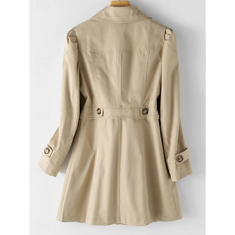 Women's Trench Coat Comfortable Breathable Zipper Pocket Casual Plain Vacation Street Casual Daily Wear Single Breasted Long Notch Lapel Regular Fit Long Sleeve Outerwear Black Pink Khaki Spring Fall 11