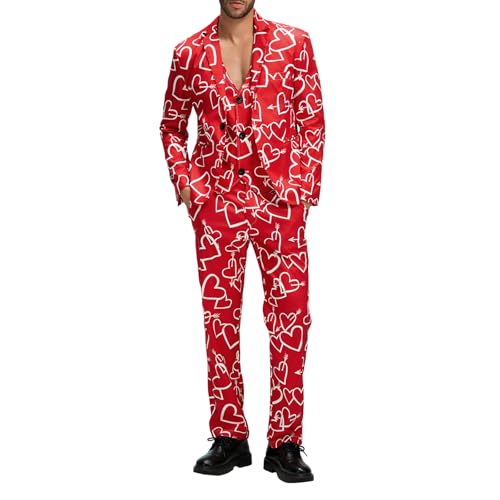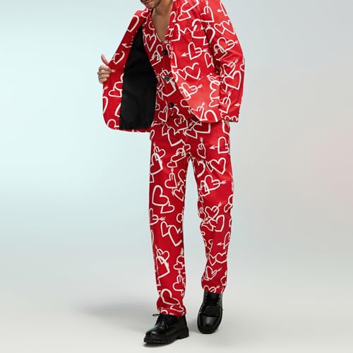 • Casual Outfit: Formal suit for men; Heart print long sleeve lapel button down jacket, pocket detail, paired with long pants and vest; Slim fit, show your body curves,Men's 3 Piece Slim Fit Tuxedo Suit Set,Love Heart Valentine's Day Casual Suits for Men