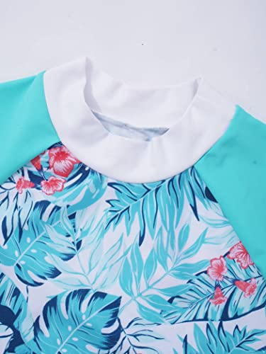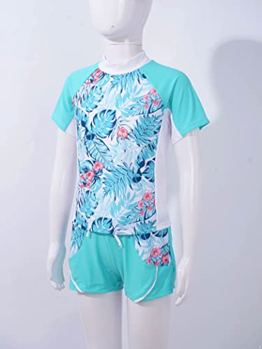 Kids Girls Floral 2 Pcs Rashguard Set Short Sleeve Shirts Top with Boyshorts Surf Swimsuit 3
