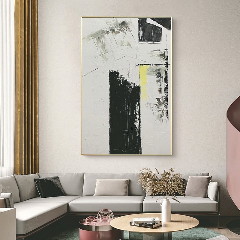 More information about Handmade Hand Painted Oil Painting Wall Art Modern White and Black Abstract Home Decoration Decor Rolled Canvas No Frame Unstretched