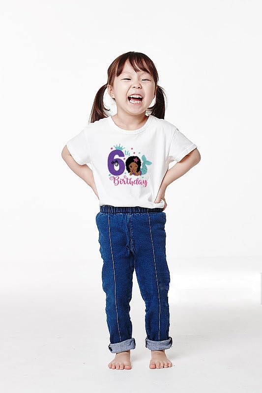 HOT ! 6th Birthday Shirt for Girls, Dress T Shirt for Girls 6 Year Old Gift Outfit Decoration Mermaid Birthday Clothes Style C White