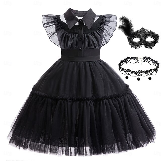 HOT ! Gothic Horror Dark Academia Halloween Costume Cosplay Dress Masquerade Accessories Set Punk & Gothic Movie Cosplay for Girls' Kid's Carnival Children's Day Masquerade