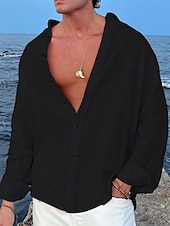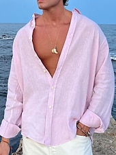 More information about Men's Shirt Linen Shirt Summer Shirt Beach Wear Button Up Shirt Plain Vacation Casual Black White Pink Blue Long Sleeve Lapel Spring & Summer Clothing Apparel