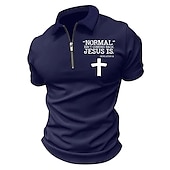 Men's Jesus Zip Polo Shirts Golf Shirt Short Sleeve Polo Shirts Collared Shirts Casual Vacation Wear Party Outfits 3D Print Quarter Zip Polo Black Navy Blue