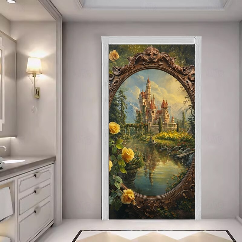 HOT ! Castle in Mirror Door Decorations Door Covers Door Tapestry Door Curtain Decoration Backdrop Indoor/Outdoor Door Banner for Front Door Farmhouse