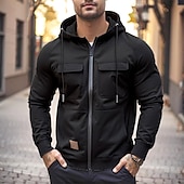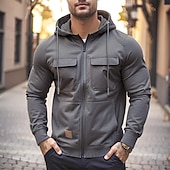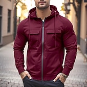 More information about Men's Hoodie Full Zip Hoodie Wine Red Black Army Green Khaki Gray Hooded Plain Zip Up Front Pocket Tactical Sports & Outdoor Casual Streetwear Cool Sportswear Spring & Fall Clothing Apparel Hoodies