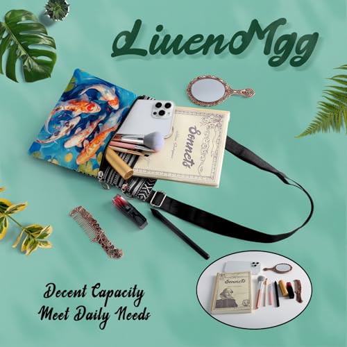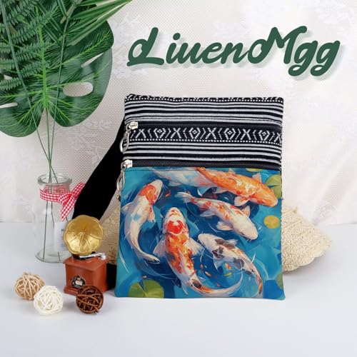 HOT ! Koi Fish Messenger Bag Small Ethnic Pattern Printed Adjustable Strap Crossbody Zipper Bag Koi Fish Phone Bag Wallet Cute Shoulder Handbag for Women Friends -1