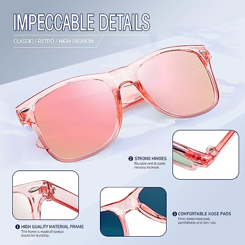 12/24 Pack Wholesale 80s 90s Retro Neon Party Clear Frame Colorful Mirrored Sunglasses Bulk for Men Women 6