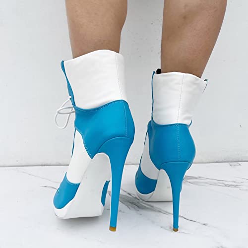 Frankie Hsu Stiletto Sport Basketball High Heeled Ankle Boots, Casual White Baby Blue Sneaker Style Bootie, Large Big Size Fashion Designer Lace Up Short Shoes For Women Men 1