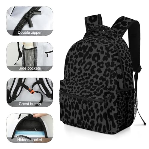 Waterproof College Gym Backpack Lightweight Travel Day Pack Carry On Backpack For Women Men Compatible with Dark Gray Black Leopard Cheetah Print 3