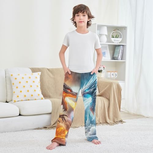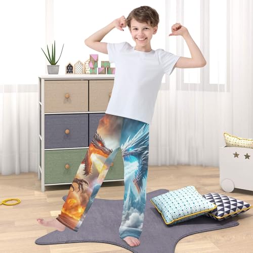 CHIFIGNO Boys Casual Pants Fire Dragon and Ice Dragon Pants for Boys with Pockets Pants for Boys 11-12 2