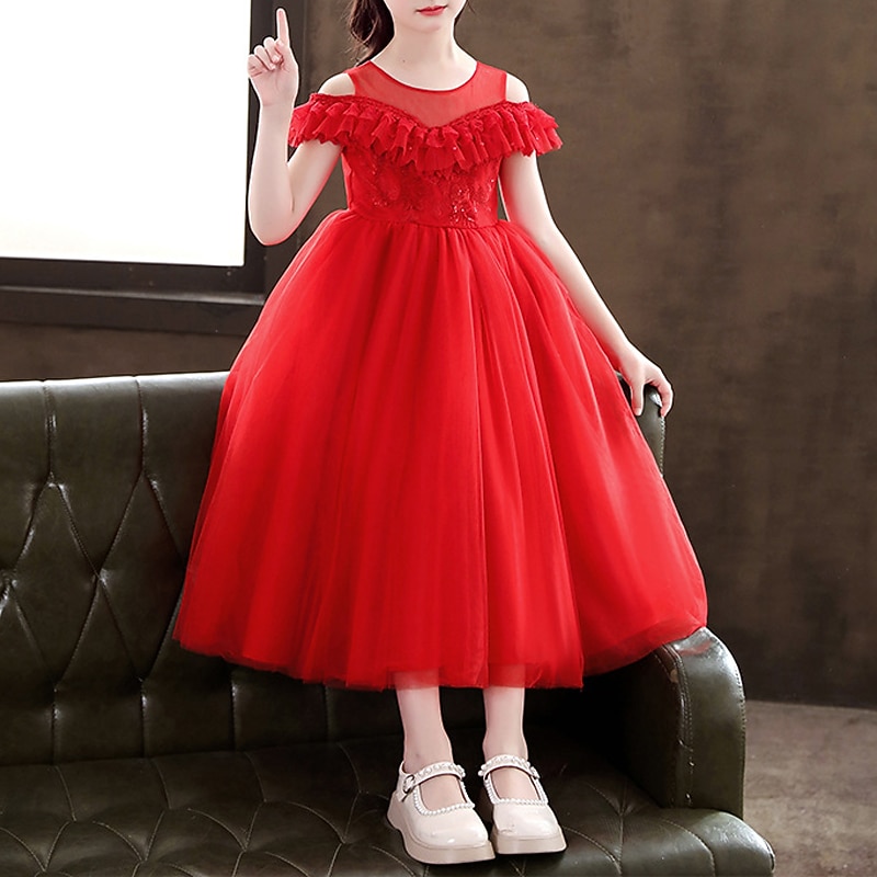 HOT ! Kids Girls' Party Dress Solid Color Long Sleeve Special Occasion Princess Polyester Party Dress Summer Spring 4-13 Years White Champagne Pink