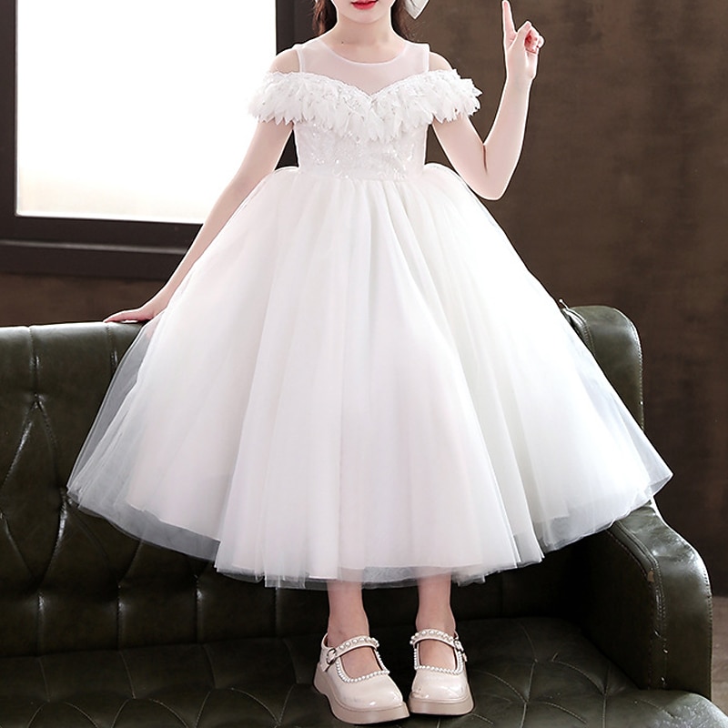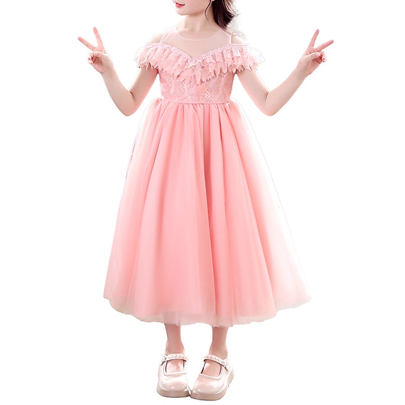 More information about Kids Girls' Party Dress Solid Color Long Sleeve Special Occasion Princess Polyester Party Dress Summer Spring 4-13 Years White Champagne Pink